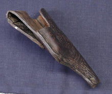 What a wonderful find! This is a rare Bolo Mauser C/96 holster, or pistolera, made of thick pigskin, nicely decorated with incised feathers, rooster's head, diamonds forming a cross. I won't lie, the exact origin is unknown to me, so I would surmise that it dates from the early 1900s, Mexican Revolution period, to the 1930s, the Spanish Civil War. Esta es una excelente funda de pistola de piel de cerdo antigua para un Bolo Mauser!