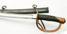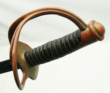 This Roby-made M1860 light cavalry sword is in wonderful original condition. Blade is clean, with no nicks and no rust, and retains much of its original polish. Grip leather is supple, wire is tight, hilt has nicely patinated to red. Scabbard shows a nice uniform dark patina, with some bites of rust. An excellent Civil War sword!