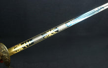 Shell guard is cast and hand-chased in the good detail, featuring 17 stars and crossed cannon, a motif repeated in the blade decoration.