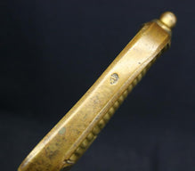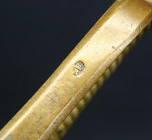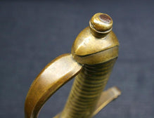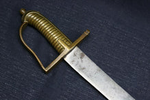 This American Revolutionary War period French Model 1767 grenadier hanger measures 29" overall, with a robust 23" blade inscribed on the back M=ture R=le D'alsace. Knuckle bow is marked with the inspector's poincon 'crowned R'. Blade retains almost all of its factory polish, the sword has a nice, solid feel. What distinguishes this early example from the later ones, is the casting technique. Earlier hilt, like this one, were cast in two pieces, later examples were of single piece construction.