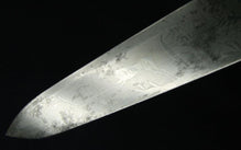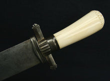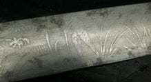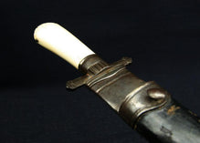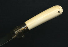 Originally a trousse, both the fork and the by-knife are long gone. Polished steel hilt supports the beautifully carved grip. Blade is superbly etched with two hunting scenes, which run along the whole length of both sides of the blade, and feature baroque hunting scenes, which are significantly above average in workmanship and artistic composition.