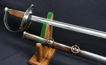 Officially titled LA SCIABOLA MODELLO 1929 PER ARMI A PIEDI, this is a Model 1929 Foot Trooper Sergeant's sword that was carried by the Italian NCOs in the War with Ethiopia and throughout World War 2, even during the Russian campaign. The condition overal is quite good, with some loss of the chrome from the scabbard. 82 cm-long blade is in excellent shape. It's maker-marked BRESCIA at the ricasso and with the Italian Army (CA) stamp. Hilt is of the classical shape, reminiscent of the weapons from the Napoleonic period. A nice World War II Italian infantry NCOs sword.