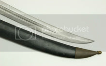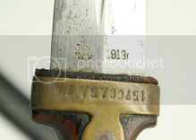 Blade is the standard 43.5 cm long, with a good amount of original factory polish remaining, along with signs of prior cleanings. There is no rust. Both edges have been period-sharpened. There is a small nick on the lower edge. Scabbard has some scoffs. A very nice Russian World War I bebut.