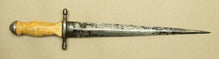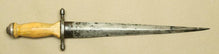 This massive dagger is 42 cm. long overall, and is mounted with a 30 cm. long blade of strongly-rhomboid cross-section. The blade is over 1.5 cm. thick at the ricasso, and gradually tapers down to the very sharp point.