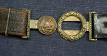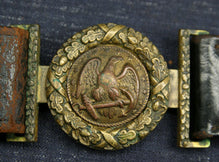 This Civil War US Navy officer's sword belt and two-piece plate are in nice untouched condition. The belt plate has acquired a beautiful uniform patina, leather is nice and supple, the scabbard slings are long gone. A very good Bellum period USN piece.